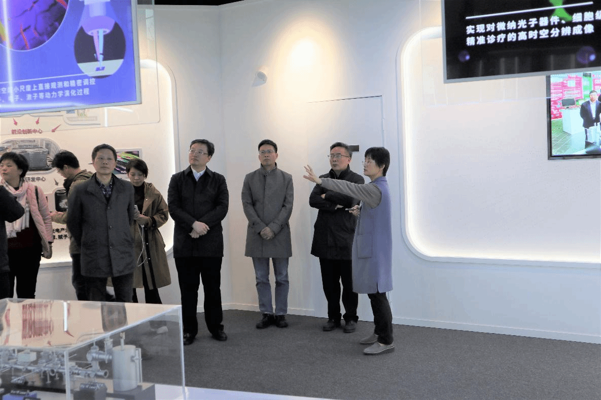 随后彭院长一行参观了光电子芯片与信息系统研究室和高分辨显微成像研究室,听取了两个研究室科研人员对正在开展的研发工作的介绍,并与研发人员就关心的技术问题、运行模式等进行了交流探讨。