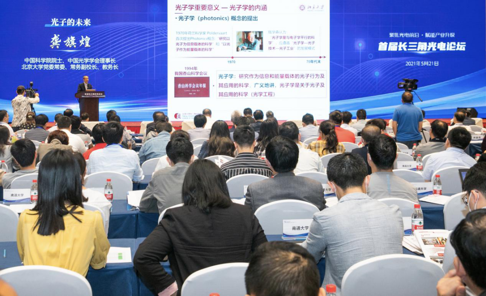 2021年5月21日,首届长三角光电论坛在南通国际会议中心成功举行。本届论坛由南通市人民政府、中国科学院信息技术科学部和中国光学学会主办;北京大学长三角光电科学研究院、南通创新区、南通市委人才工作领导小组办公室、南通市科学技术局、南通市工业和信息化局承办。