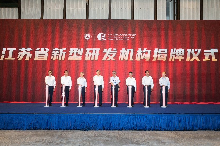 开幕式上还举办了北京大学长三角光电科学研究院“江苏省新型研发机构”的揭牌仪式。北大光电院将在省新型研发机构建设项目的支持下加快打造成为具有国际影响力的光电研发和产业发展的创新平台。