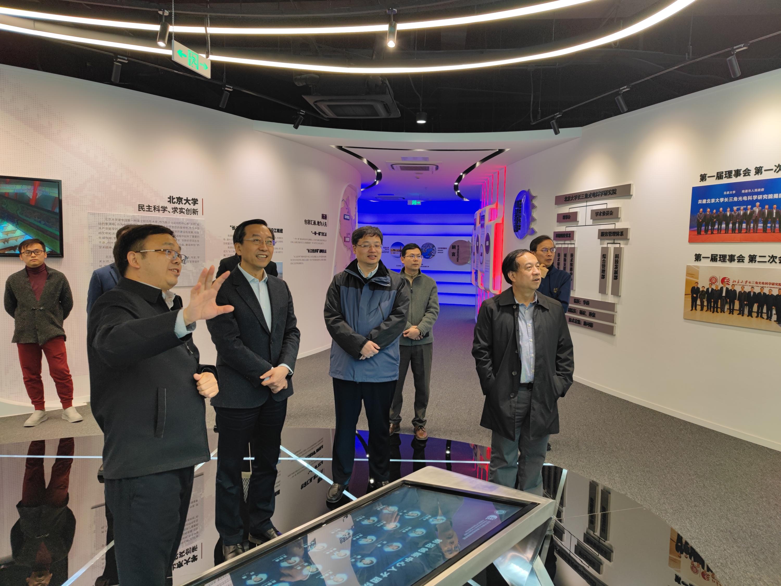 11月28日,中科院院士、中国物理学会理事长、上海交通大学原校长张杰,中科院院士、上海交通大学教授董晨莅临北京大学长三角光电科学研究院指导、交流,南通市委组织部副部长孙剑波、南通创新区管理办公室主任丁锋、副主任王康力等陪同来访,研究院副院长孙泉及多名博士研发人员一起接待了两位院士。