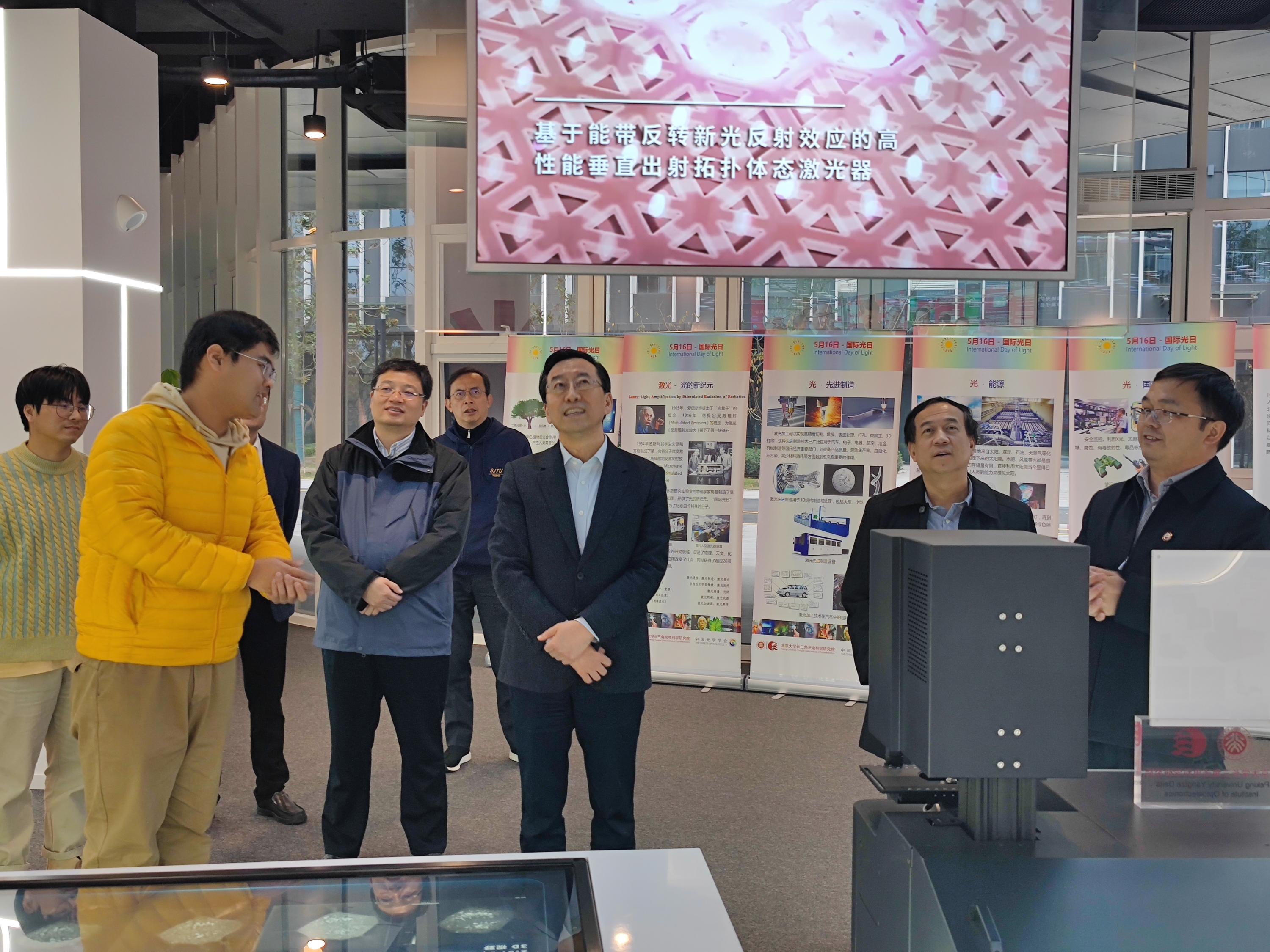 我院杨丰赫博士、张方醒博士、马睿博士分别向两位院士介绍了硅基光电子芯片与模块、微纳光学精准检测与传感、高分辨显微成像等方面的技术研发布局、最新研发成果以及在产业化方面的探索。