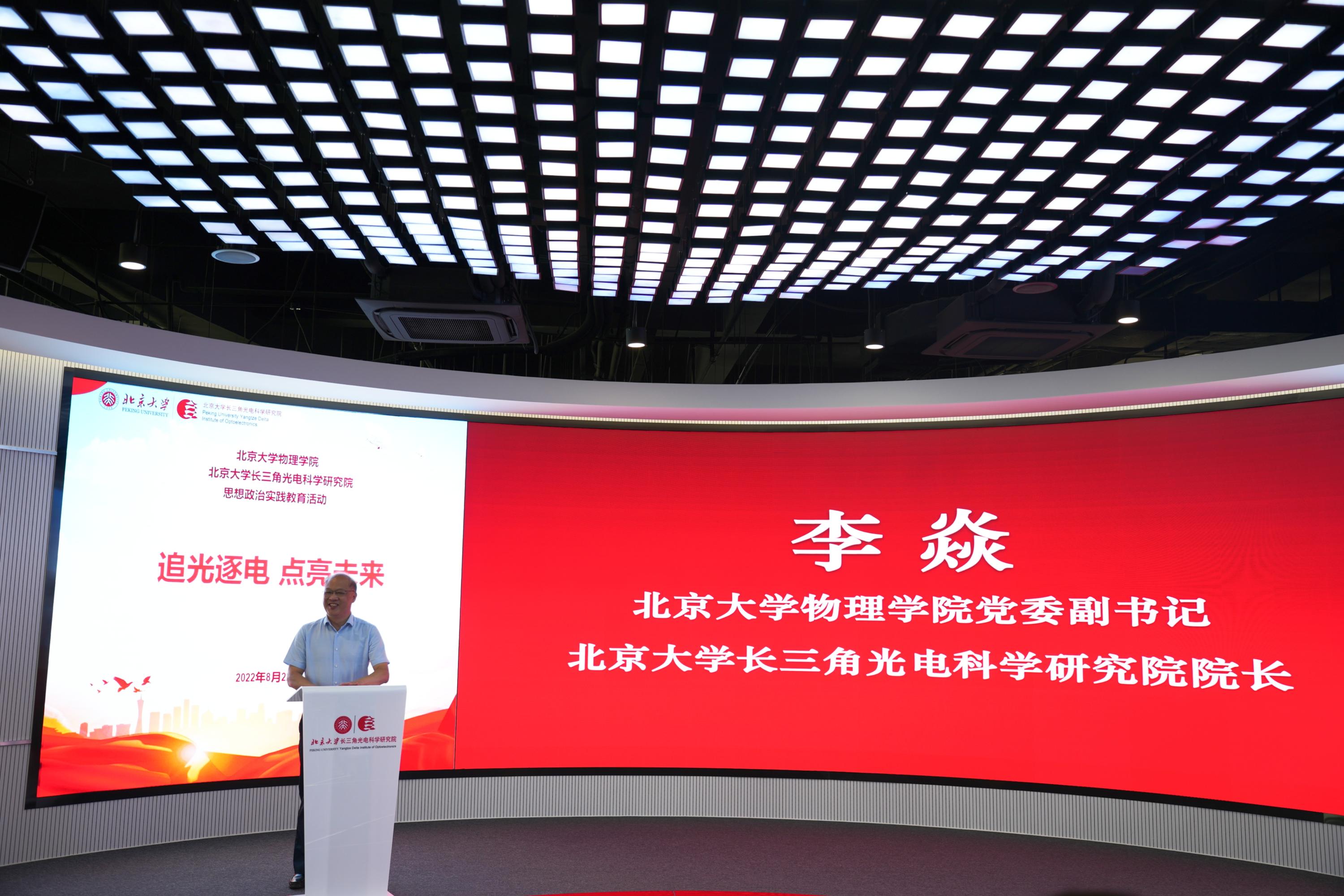 揭牌仪式上,李焱指出思政实践是认识社会、增长才干的第二课堂,有助于同学之间互相帮助、增进友谊。他鼓励北大物理学院学生在本次实践活动中充分发挥实践技能优势,展现北大学子良好的精神风貌;勉励学生学习科研精神、知行合一,牢记“科技强国”的使命担当,将“爱国情、报国志”融入到建设社会主义现代化强国、实现中华民族伟大复兴的奋斗之中。此外,他还表示将继续加强我院与北大物理学院的密切合作,建设好思政实践课教育基地,为学校师生深入科学研究第一线,感受科技前沿、时代发展,加快历练成长提供学习实践机会。