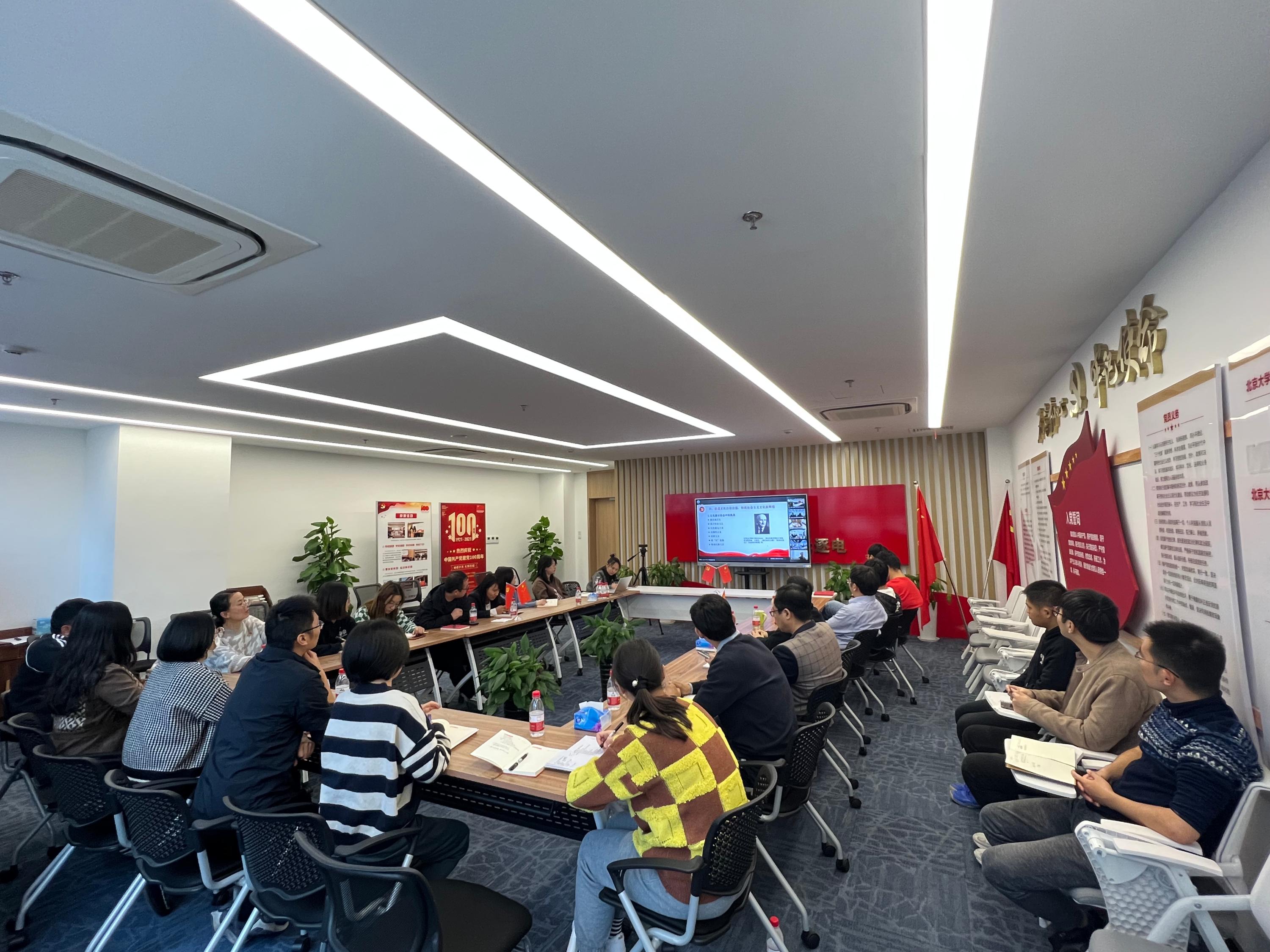 参会人员首先线上参加了北京大学科技开发部党支部联合北京大学国内合作委员会办公室党支部、大数据分析与应用技术国家工程实验室党支部组织的党的二十大精神专题学习活动,北京大学马克思主义学院王久高教授以“全面深刻理解党的二十大精神、努力建功新时代”为主题,给大家带来了一堂内容翔实、思想深刻、精彩生动的党课。王教授从“历史性变革和成就”、“开辟马克思主义中国化时代化新境界”、“吹响全面建成社会主义现代化强国的冲锋号”、“着力推动高质量发展”、“科教兴国与培养现代化建设人才”、“推进文化自信自强、铸就社会主义文化强国新辉煌”“增进民生福祉、提高人民生活品质”、“促进世界和平发展、推动构建人类命运共同体”八个方面,娓娓讲述了党和国家事业取得的历史性成就及发生的历史性变革,深刻阐释了“两个确立”的决定性意义。