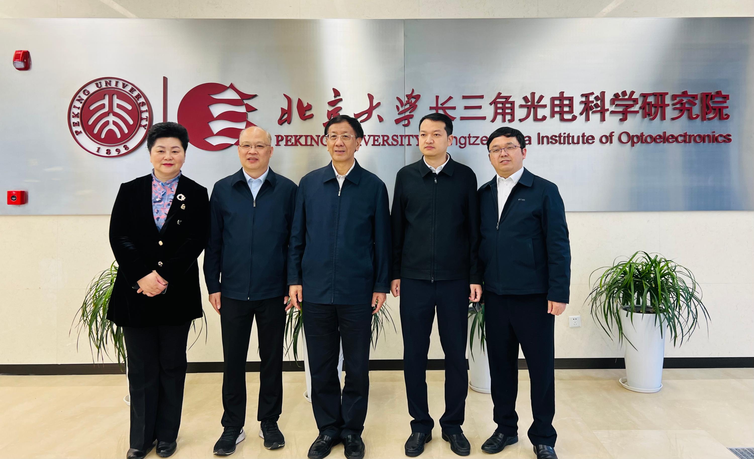 在研究院展厅,李焱对曹建明一行的到访表示热烈欢迎,并介绍了研究院发展历程、组织架构、人才团队、研究单元等方面的情况。他表示研究院作为北京大学和南通市合作共建的新型研发机构,通过在南通延伸北大光电领域的研究并进行产业化探索,举办国际国内学术会议和论坛,参加创新创业大赛等方式,做实做强研究院品牌,助力南通培育壮大光电产业,发挥研究院在人才和科创项目方面的集聚效应,成为介绍南通、宣传南通的窗口。