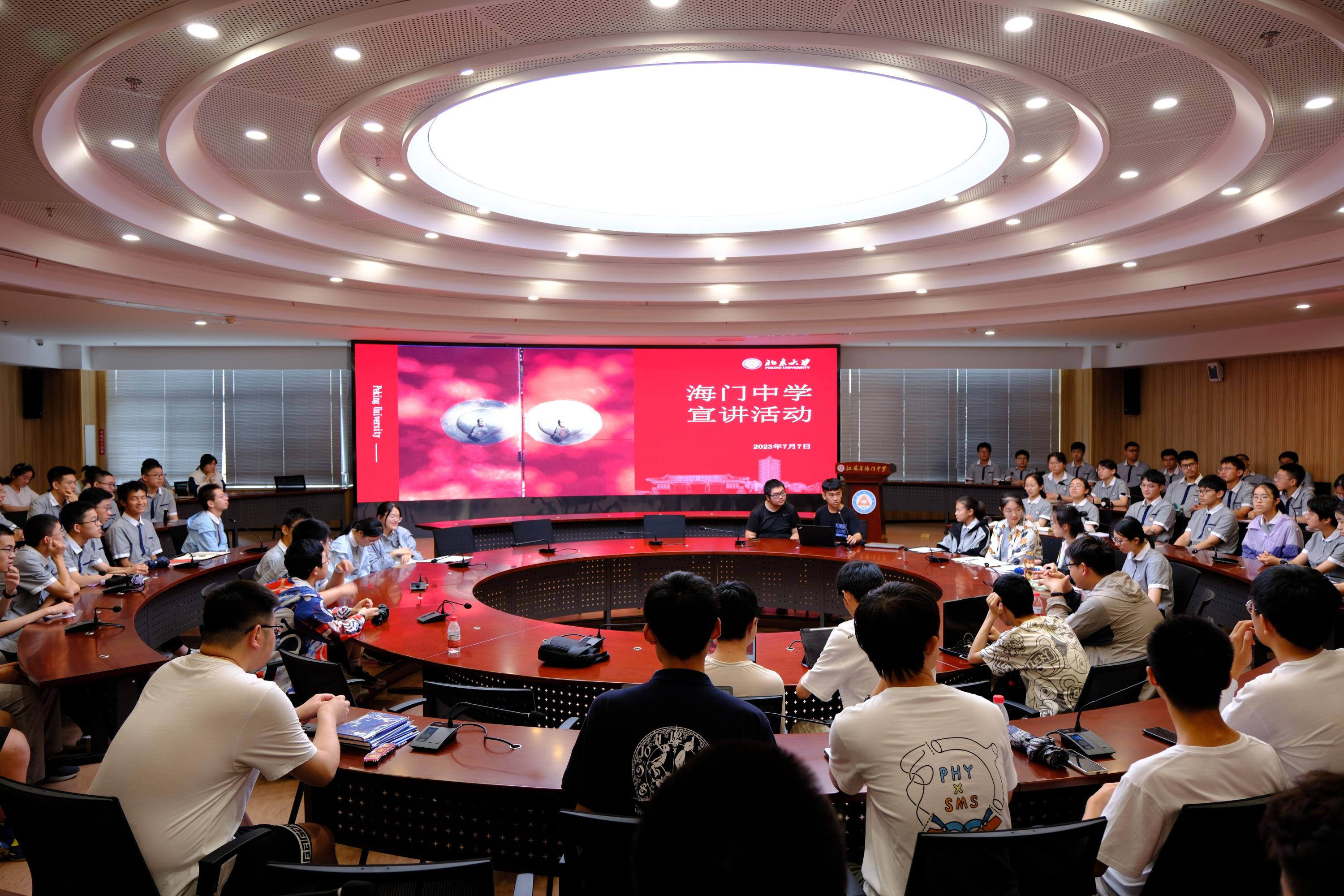 7月7日上午,实践团走进海门中学,校党委副书记、校长高迎九,副校长黄晏对到访的师生们进行了热情接待。在副校长黄晏的带领下,实践团首先参观了校园,感受了有着百年历史、人才辈出的海中文化。随后实践团的学生为学校师生带来了一场宣扬“两弹一星”精神的主题报告,通过对郭永怀先生事迹的缅怀,让学生们感受到先辈报效祖国、勇于攻坚克难的精神。最后实践团在弘謇楼圆形报告厅和海中新高三学生们分享了高中学习及竞赛等方面的经验,并与海中学子进行了气氛热烈的现场互动。