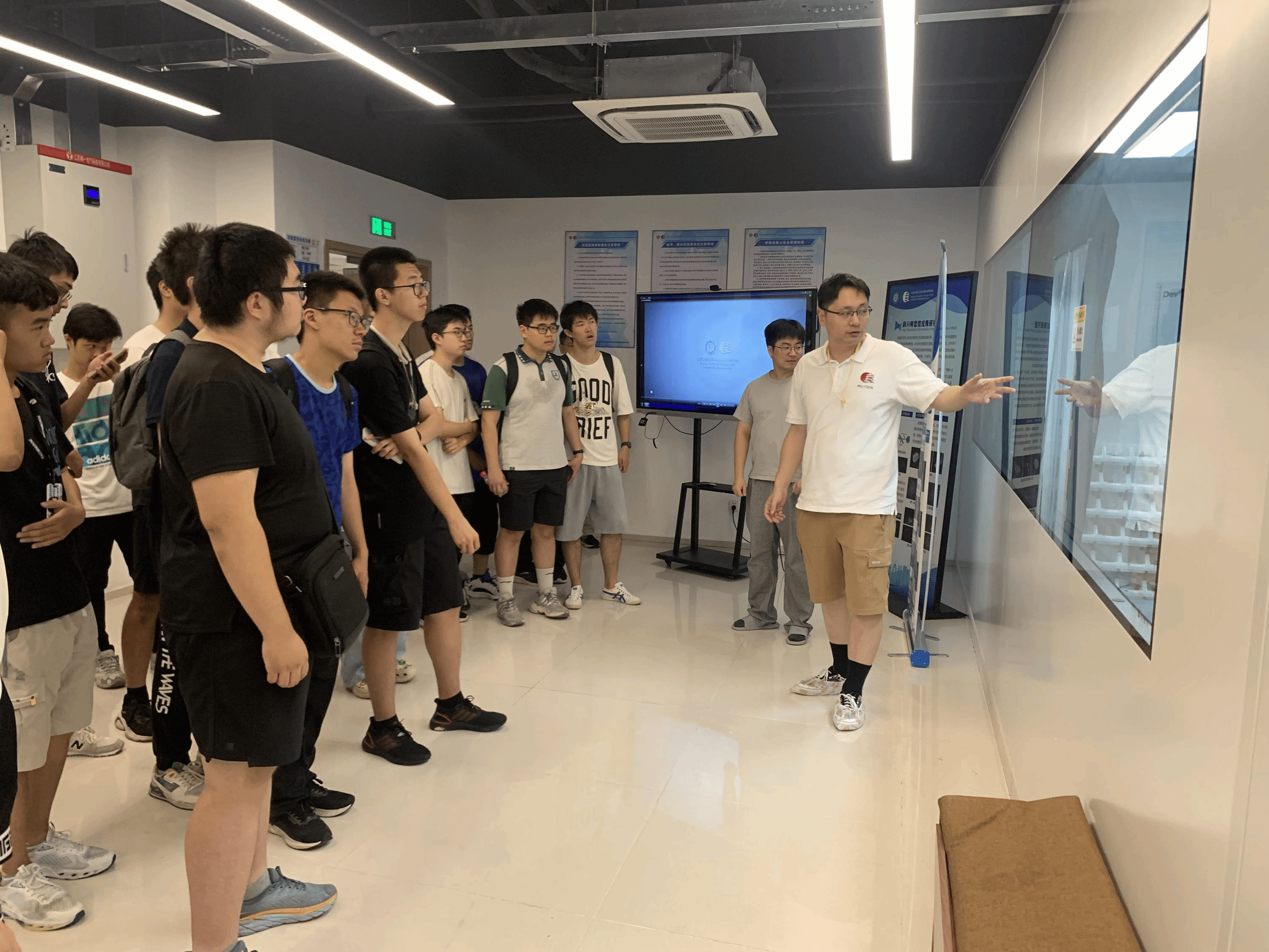 7月5日,本次暑期思政实践活动举行了简短的开幕式。北京大学物理学院党委副书记、研究院院长李焱,通创投公司党委委员、纪委书记丁建,研究院党支部书记、副院长孙泉以及本次实践活动班级的班主任、北大物理学院教授许秀来出席开幕式,开幕式由实践团辅导员李延东博士主持。在开幕式前,同学们还参观了研究院的科技展厅,对和北大物理学院有着极深渊源的研究院有了全新而清晰的了解。