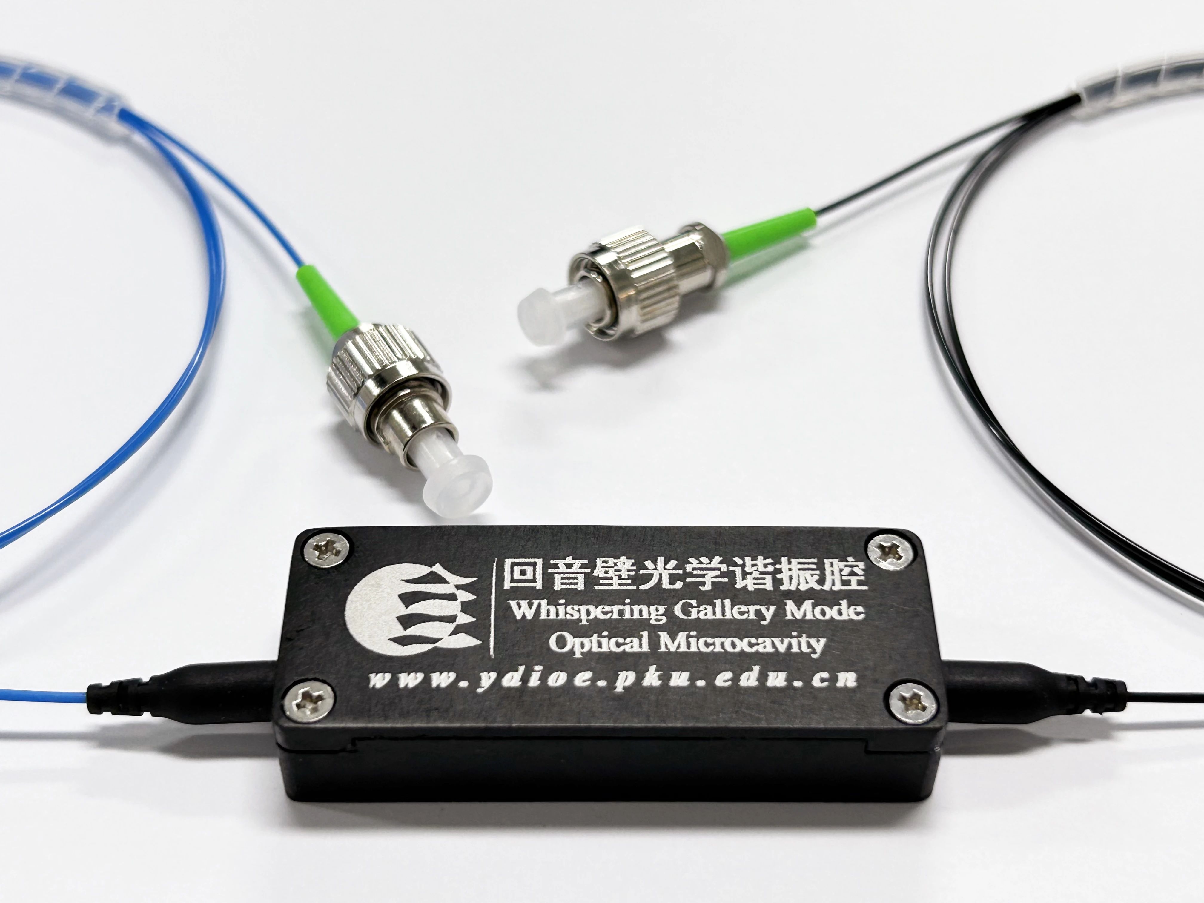 超高品质因子晶体光学微腔器件是针对光通信及科研市场推出的新型谐振腔器件。该器件采用低缺陷铌酸锂、氟化镁、氟化钙晶体作为腔体材料,具有腔损耗低、非线性系数高、表面疏水性强的优势。该器件封装结构采用了被动隔振式耦合固定技术以及全密闭惰性气体保护技术,极大提升了微腔器件的稳定性及使用寿命。本器件在参量震荡、超窄线宽滤波、孤子光源、二次谐波产生等领域具有广泛的应用前景。