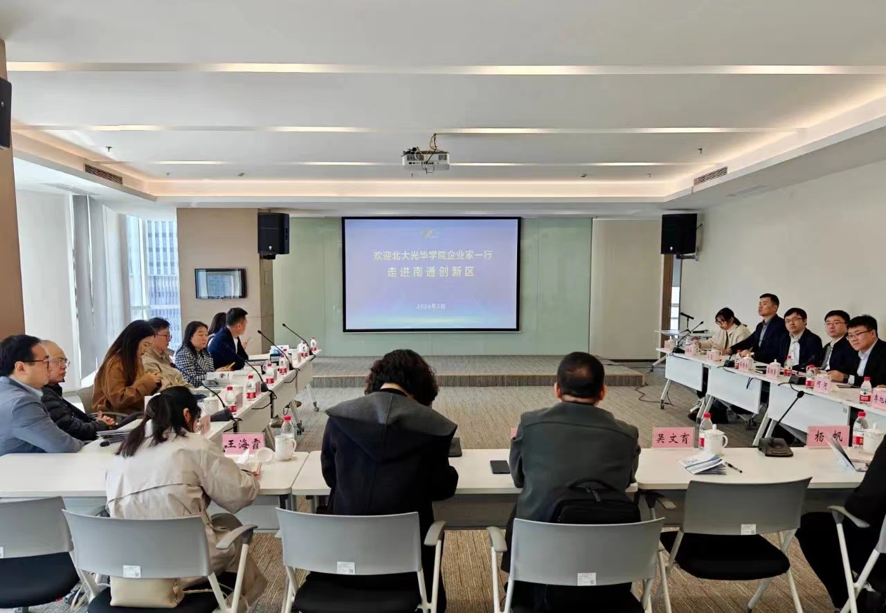 2024年3月22日至23日,北京大学光华管理学院数字教育中心组织科技及产业投资等领域的企业家学员一行13人来通考察交流,主要考察了南通创新区的创新创业环境,到我院重点调研并座谈交流。
