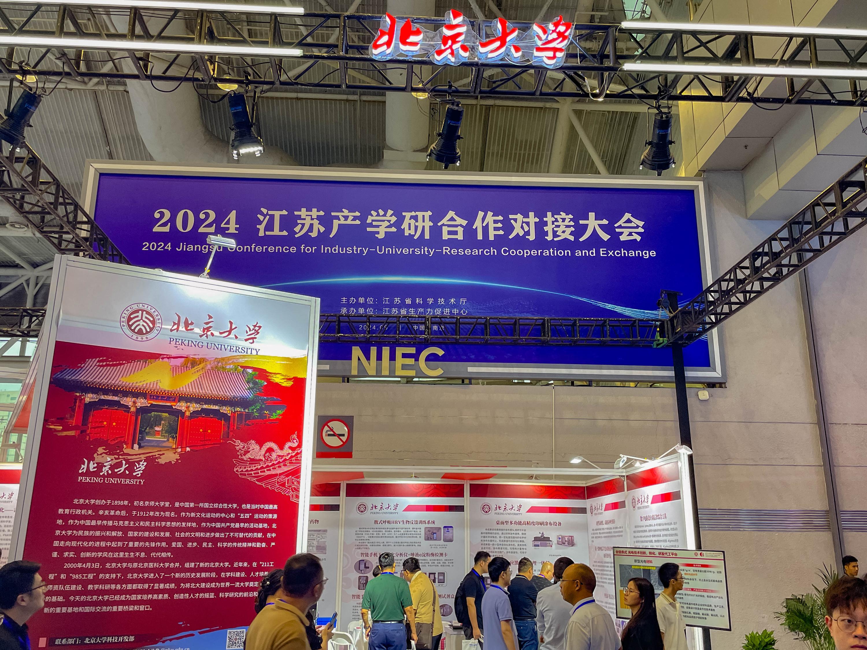 9月11日,由省科技厅主办、省生产力促进中心承办的2024江苏产学研合作对接大会在南京国际展览中心隆重开幕。我院受邀参加北京大学组团参展,重点展示了在新型光电材料、高性能光电器件、先进光电模块和高端仪器装备等方面的最新研发成果,与众多行业专家学者、知名企业齐聚一堂,共襄盛会。