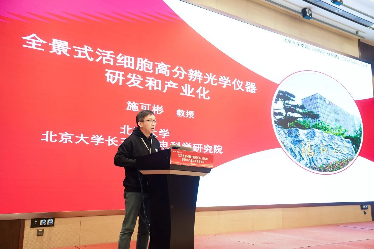 北京大学物理学院教授、北京大学长三角光电科学研究院副院长施可彬分享了《全景式活细胞高分辨光学成像装备研发和产业化》为题的报告。其成果成功突破了高端科研装备的“卡脖子”难题,是“让顶尖技术从实验室走向产业”的生动范例。