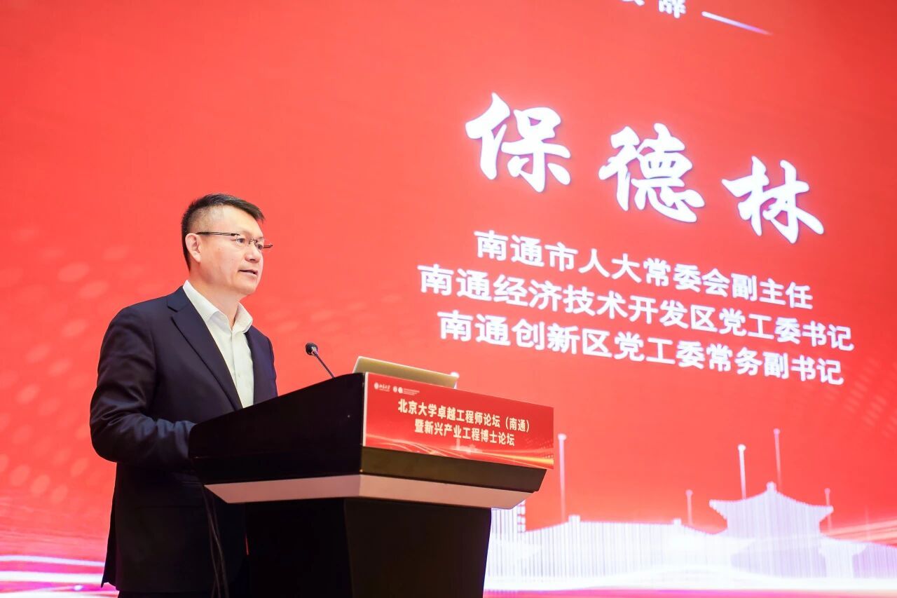 保德林在致辞中对论坛的召开表示热烈祝贺,并介绍了南通作为“万亿之城”的发展活力。他强调,南通创新区作为全市科技创新的“主阵地”和产业转型的“发动机”,正聚焦集成电路、生物医药、人工智能、船舶海工等核心赛道,全力打造“三谷一区”高水平科技园区。他表示,将以本次论坛为新起点,持续深化与北大的全方位合作,让更多卓越工程师在江海之滨施展才华、成就梦想。