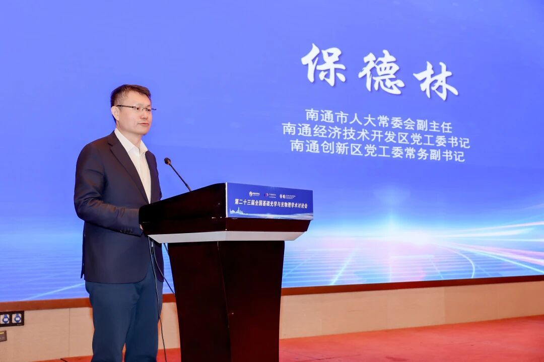 保德林在致辞中对本次会议的召开表示热烈祝贺,并介绍了南通创新区的发展优势与科创生态,他强调,南通正以开放姿态深度融入长三角科技创新共同体,期待本次会议能够为南通地方光电产业发展注入活力。