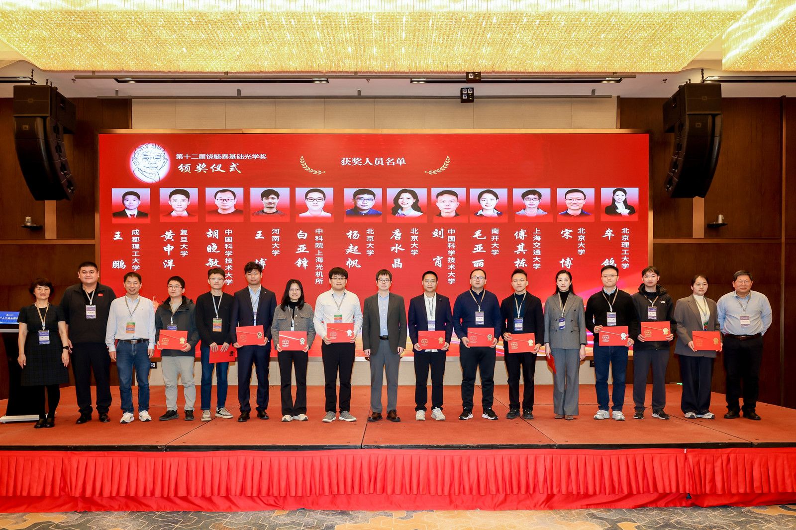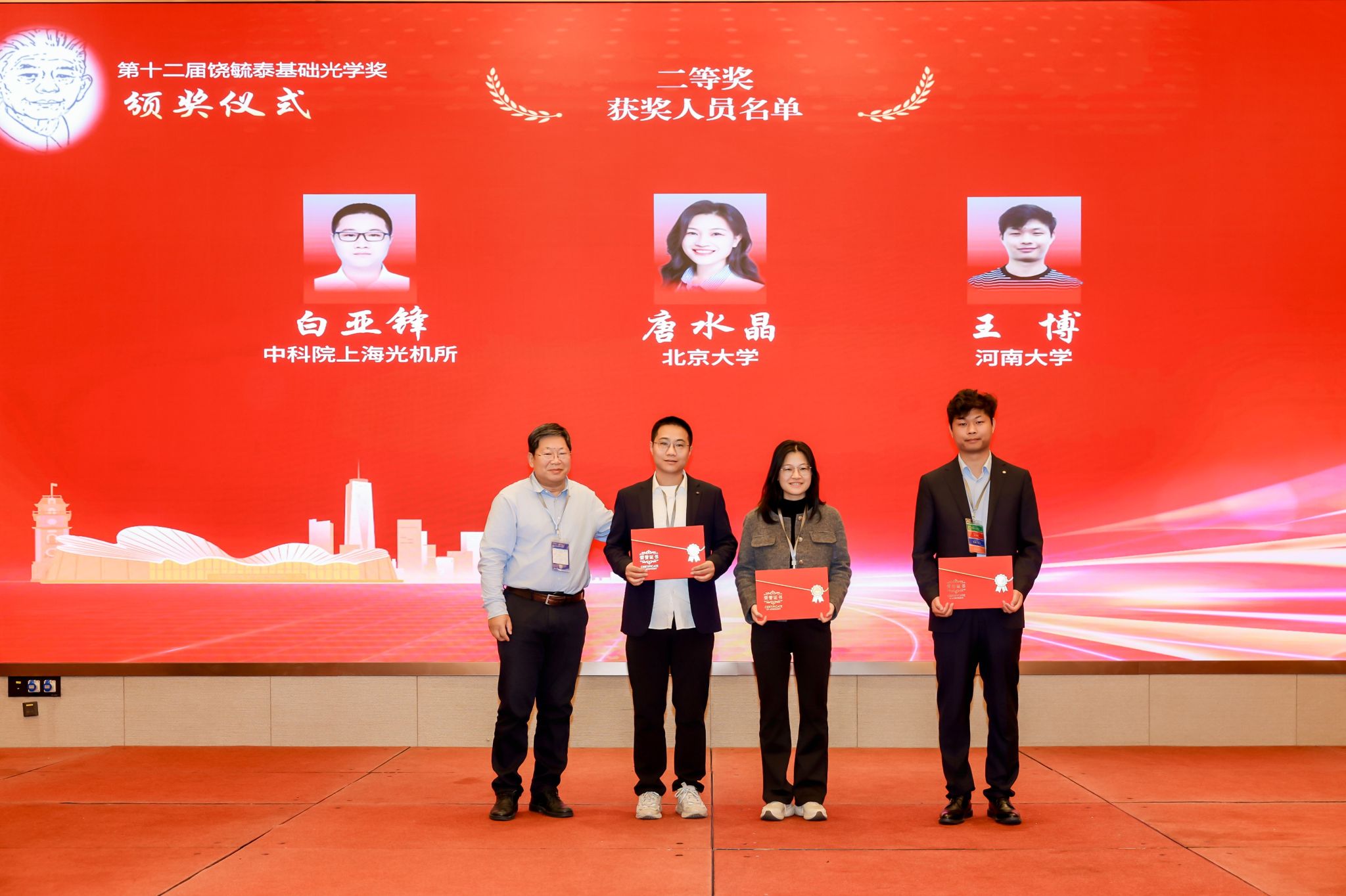 会上,举行了第十二届《饶毓泰基础光学奖》颁奖仪式,李儒新、许京军、刘运全、杨耕硕作为颁奖嘉宾上台颁奖。