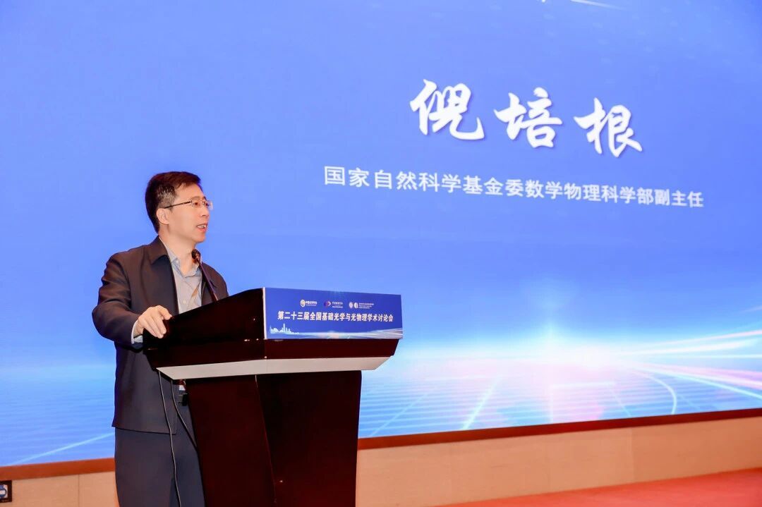 倪培根提到,近年来光学相关领域成果丰硕,新热点和新增长点不断涌现。他表示,国家自然科学基金委数学物理科学部高度重视光学领域发展,将进一步支持一线科研人员获取更多科技资源,并对基金委2026年项目申报的最新政策进行了介绍。