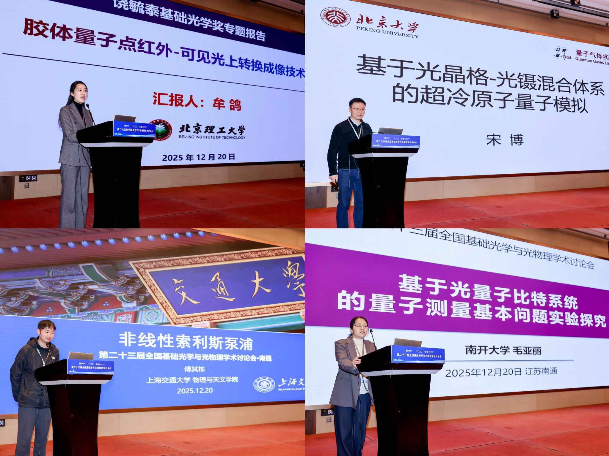 2025年12月19日至21日,第二十三届全国基础光学与光物理学术讨论会在南通创新区成功举办。本次会议由中国光学学会基础光学专业委员会、中国物理学会光物理专业委员会和北京大学长三角光电科学研究院联合主办,南通未名光电科技有限公司和《量子电子学报》编辑部联合承办。会议吸引了近300位来自国内60余所高校、科研院所的院士、专家、学者及研究生代表来通参会,共收到投稿140余篇。与会者围绕光学与光物理领域基础研究、前沿技术的最新进展进行了深入交流与探讨。