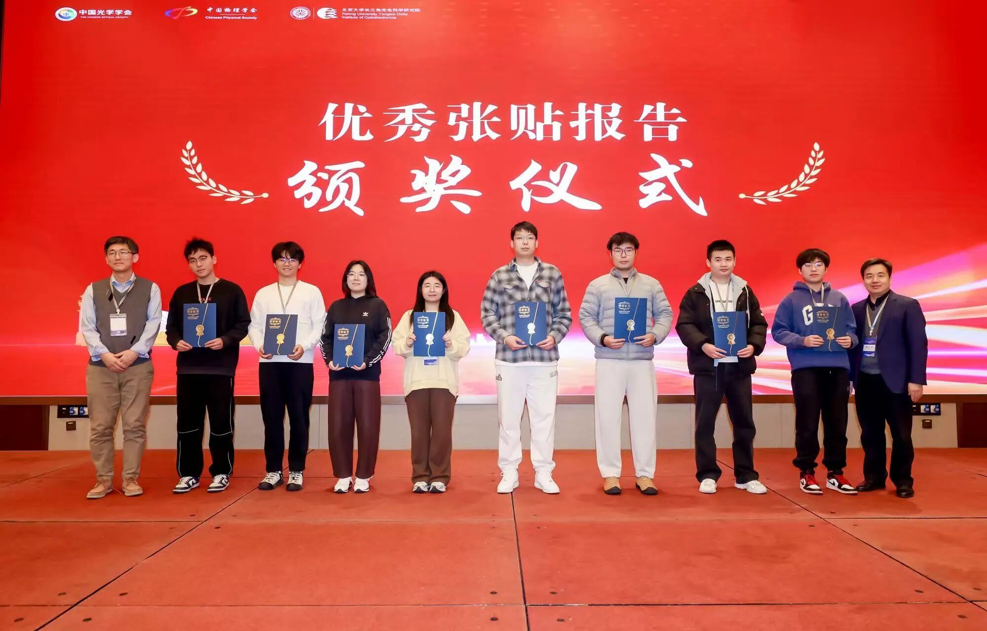 本次会议还集中展示了55篇张贴报告,内容涵盖光物理、量子信息、光电材料等多个领域。经评审,共有8位报告人获“优秀张贴报告”奖,复旦大学教授田传山、清华大学教授熊启华为获奖人颁奖。
