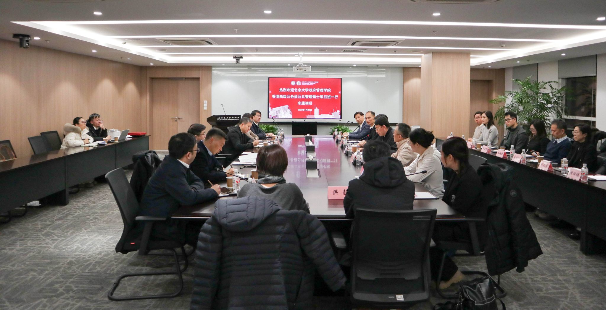 1月20日,北京大学政府管理学院党委书记李杨,MPA教育中心主任孙明、副主任王嫡携香港高级公务员公共管理硕士(MPA)项目班学员来通调研。市人大常委会副主任、南通开发区党工委书记、南通创新区党工委常务副书记保德林,南通市外办党组副书记、副主任严航,南通创新区党工委委员、管理办公室副主任张培为接待了来访一行,我院执行院长杨宏,副院长孙泉,通创投公司党委委员、纪委书记丁建,南通创新区人才科技局局长林晨陪同调研。