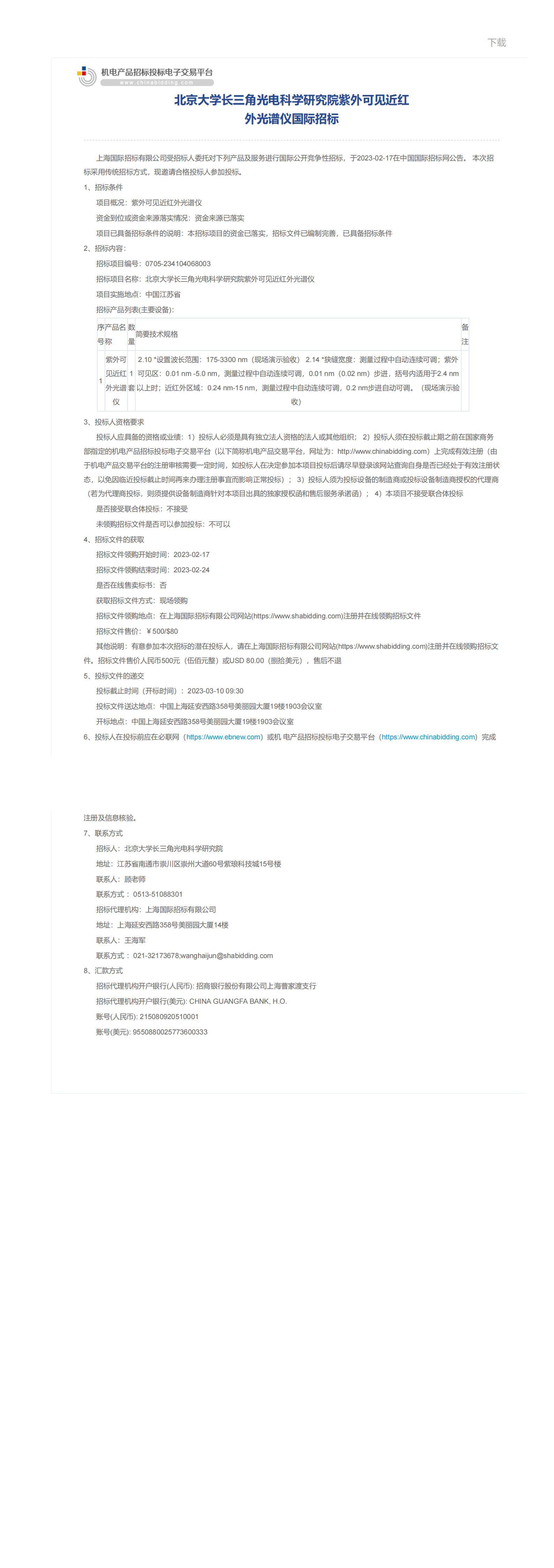 北京大学长三角光电科学研究院紫外可见近红外光谱仪国际招标公告(2)