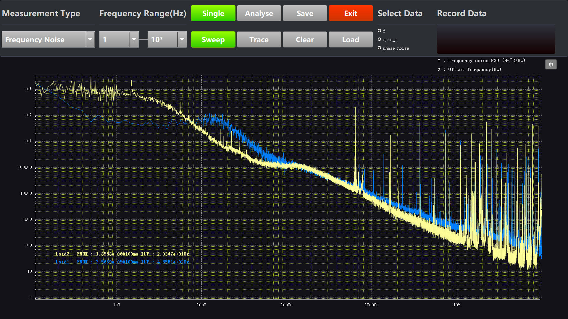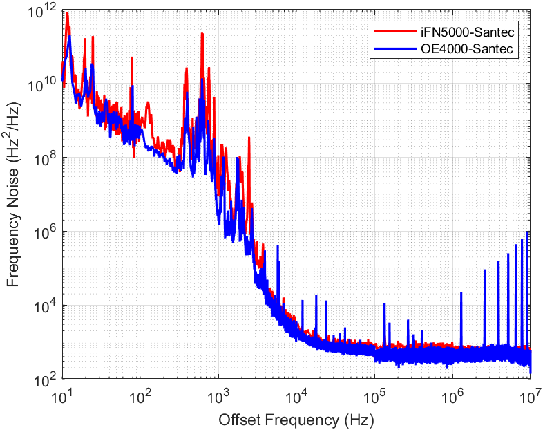 激光器不同模式和工作状态的频率噪声不同。通过对比不同模式、电流、温度时的频率噪声可以辅助分析激光器的最佳模式和工作情况。