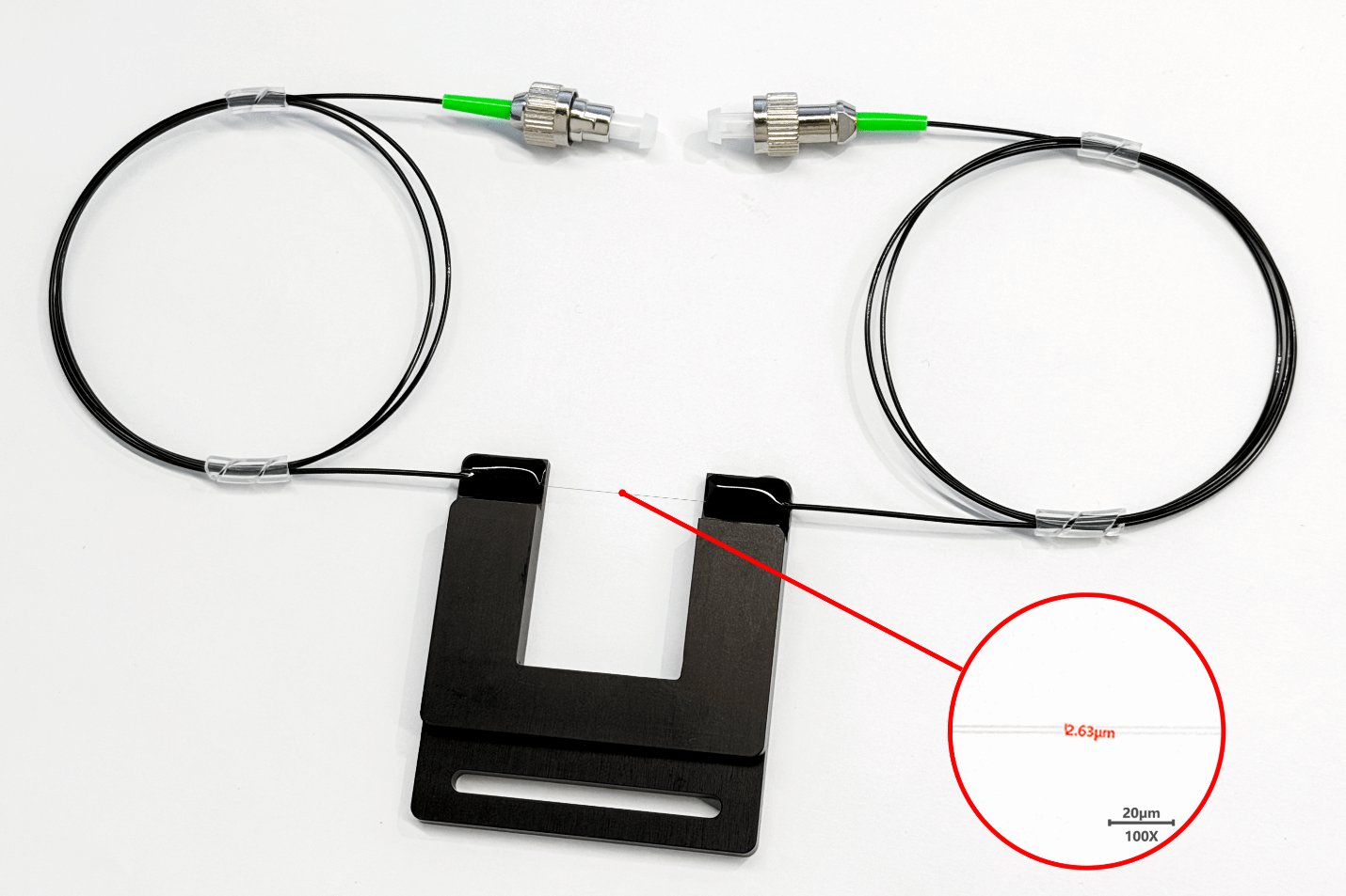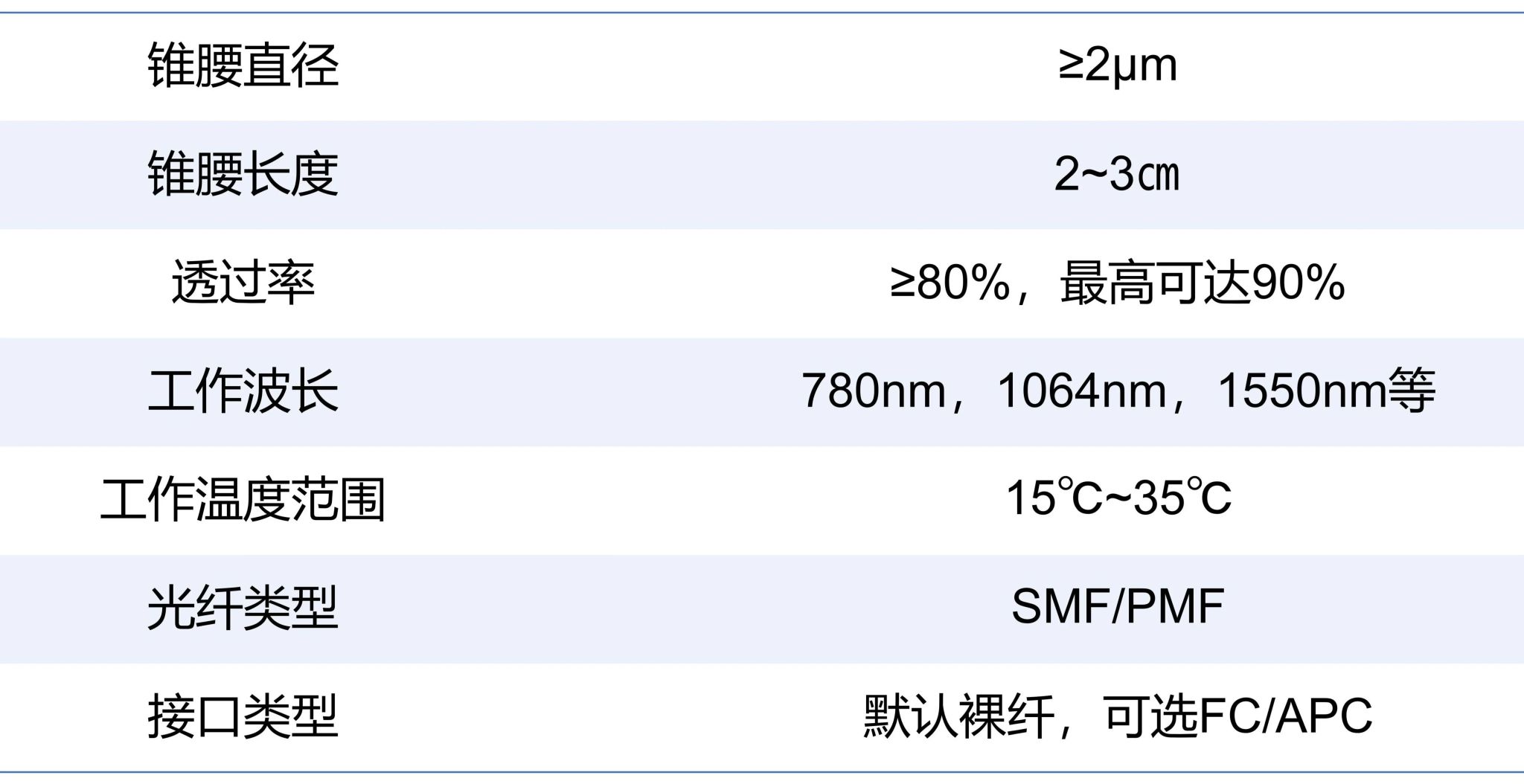 拉锥光纤是一种通过熔融拉伸工艺将标准光纤局部拉细而形成的锥形微纳光学器件。其特殊的锥形结构能够有效调控光场,增强倏逝场效应,因此在光纤通信、传感和激光器等领域具有广泛应用。