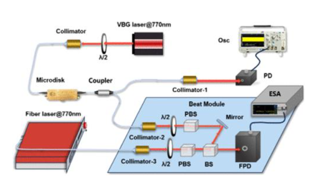本工作研究出一种双腔窄线宽激光器,可以将全封装高 Q 值回音壁模式(WGM)微谐振腔集成到体布拉格光栅(VBG)激光器中,工作于 SERF 共磁强计的 770nm 泵浦波长。