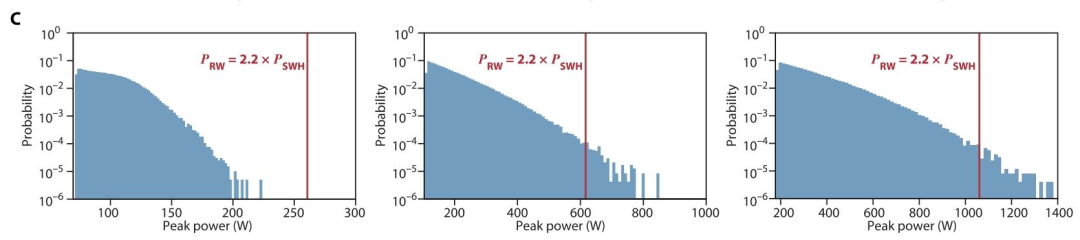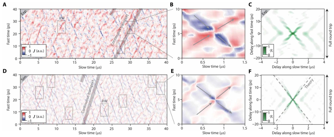 本研究统计大量RW事件,发现其峰值功率呈长尾分布,符合RW定义。实验进一步揭示了RW的形成机制:两束相位接近的弱脉冲因Kerr非线性发生构造性干涉,形成高强度RW。此外,研究还利用光子电流相关函数(CCF)量化了微腔中的能量输运过程,发现其具有长程关联性,且与数值模拟高度一致。