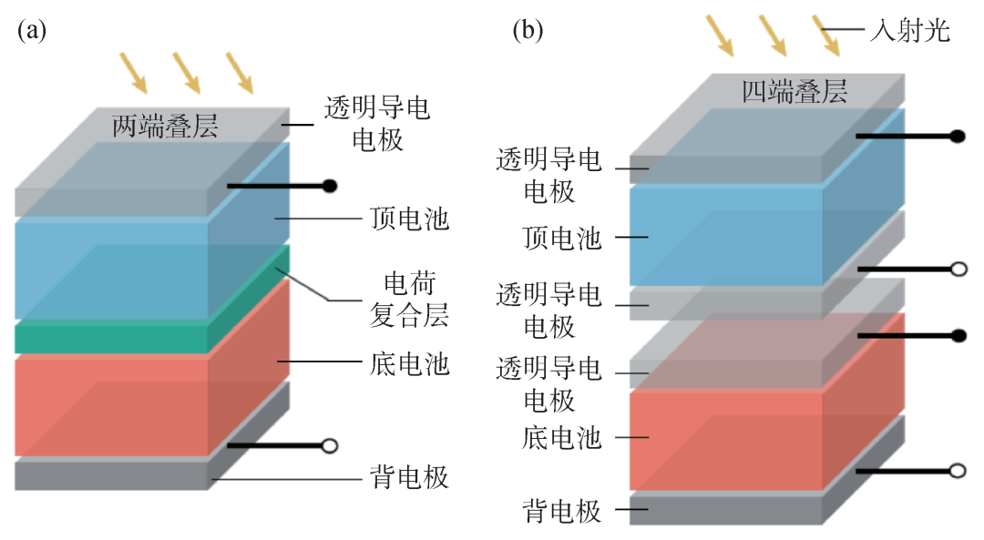 图6 两端叠层(a)、四端叠层(b)太阳能电池的结构示意图[48]